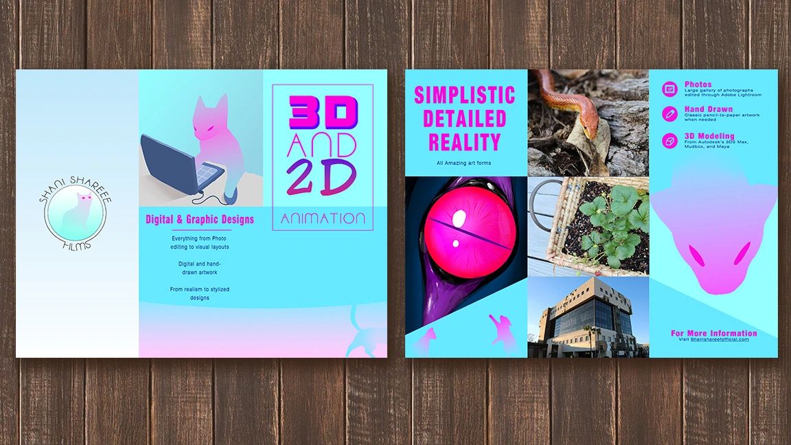 Below are a few miscellaneous digital design projects and my brand. The main tools I used were Adobe Photoshop and Illustrator because they allowed me to do various editing techniques such as warping, masking, and color grading. Illustrator, in particular, is great for making logos and icons.
